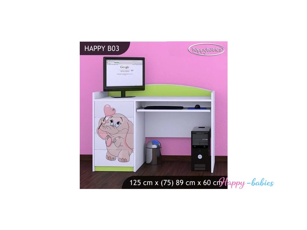 Psací stůl Happy B03 - růžový slon se srdcem