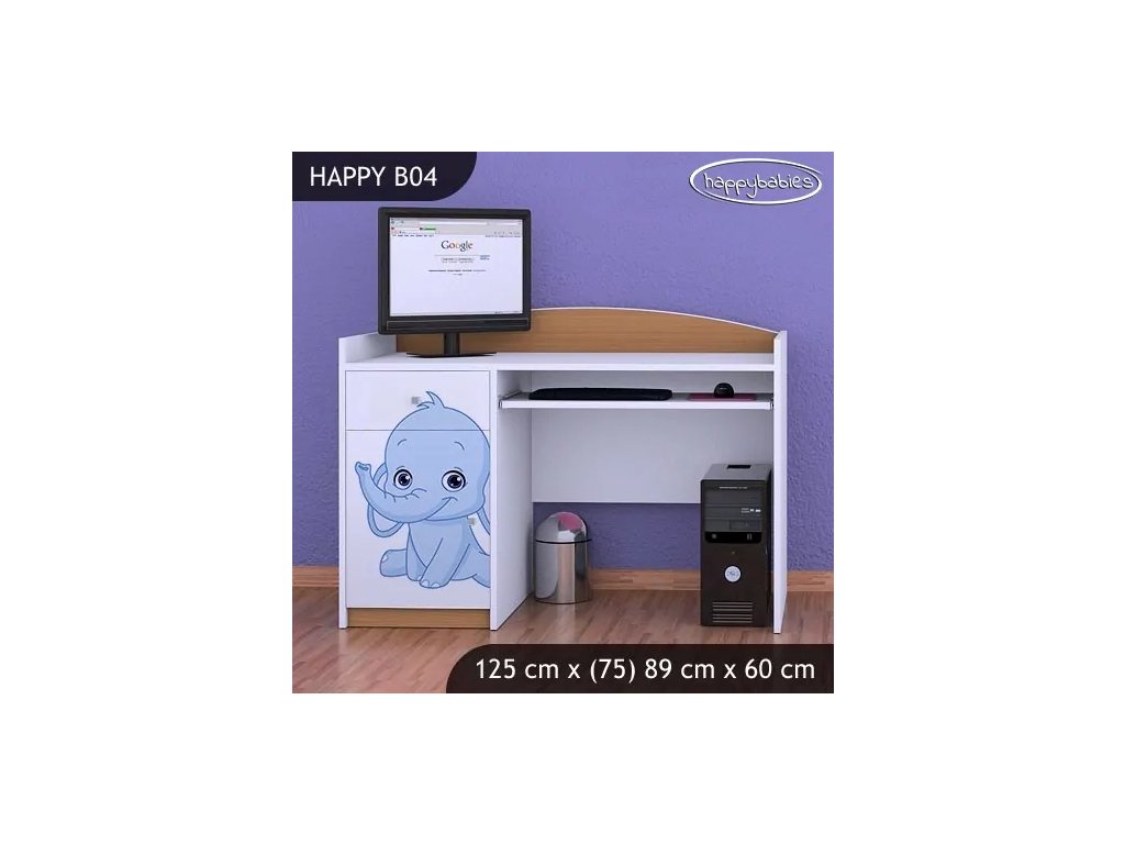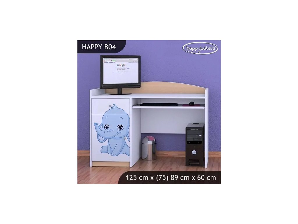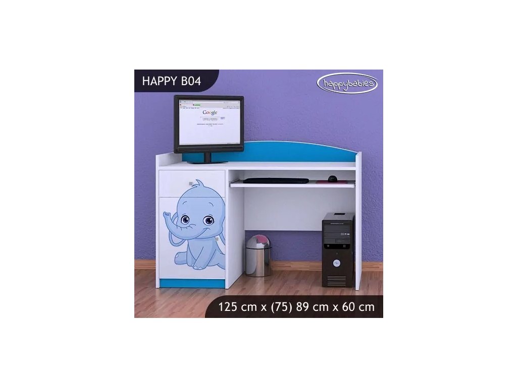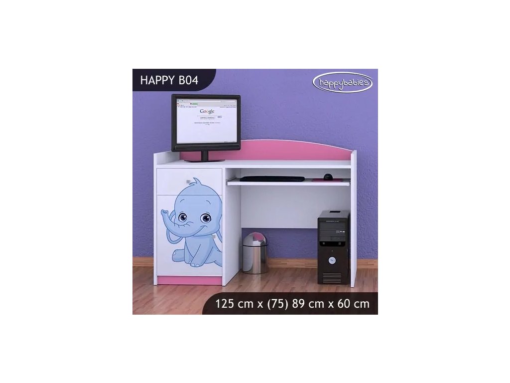 Psací stůl Happy B04 - růžový a modrý slon