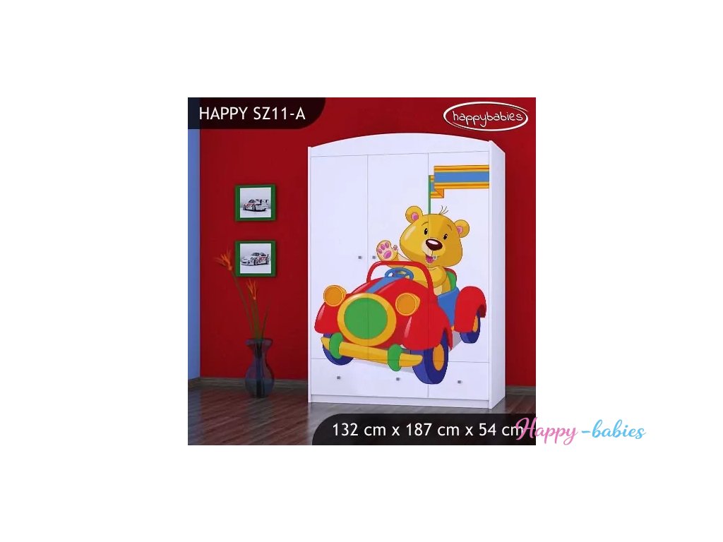 Skříň Happy SZ11 - medvídek v červeném autě